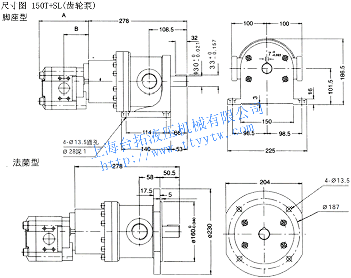 定量高低壓組合泵50T+SL(齒輪泵)尺寸圖下載 定量高低壓組合泵150T+SL(齒輪泵)尺寸圖下載