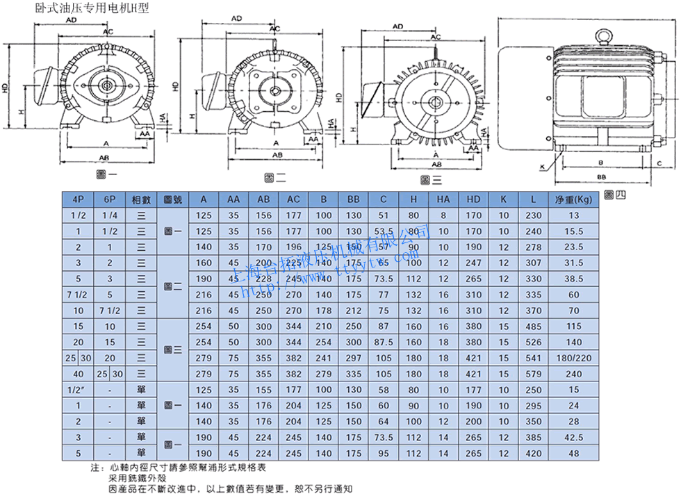 油壓用臥式長(zhǎng)嘴型電機(jī)H1型