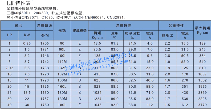 電機(jī)特性表下載