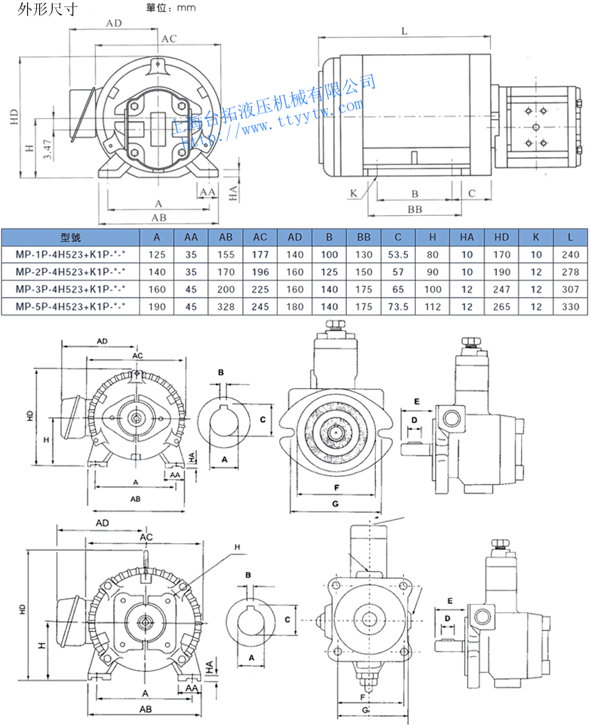 定量齒輪泵電機(jī)組合MP外形尺寸