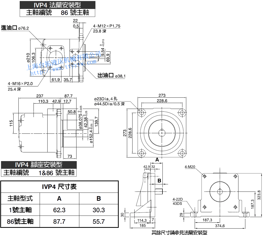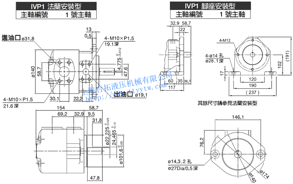 轉(zhuǎn)數(shù)(r/min)法蘭型 腳座型 IVP1 2 7.5 138 157 1800 138 1200 138 1200 600 18 23.4 3 10.2 4 12.8 172 207 172 5 16.7 6 19.2 7 22.9 8 26.2 10 31.0 11 35.0 12 37.9 157 157 157 14 44.2 138 138 138 IVP2 10 32.5 172 207 1800 172 1200 138 1200 600 26.7 35.4 12 38.3 14 43.3 15 46.7 17 52.5 19 59.2 21 65.0 25 78.6 138 157 157 IVP3 17 53.3 172 207 1800 172 1200 138 1200 600 36.9 45.6 21 66.7 25 79.2 30 95.0 32 100 35 109 38 118 42 134 138 157 157 IVP4 30 96.0 172 207 1800 172 1200 138 1200 600 68.9 94.8 35 109 38 128 42 134 50 156 60 189 67 210 157 172 157 75 236 138 157 備注:●代號(hào)是在1200r/min和6.9bar下的額定容量US gpm。?記號(hào),允許0.5秒以內(nèi),超過"最高使用壓力"10%的瞬間(尖峰)壓力。