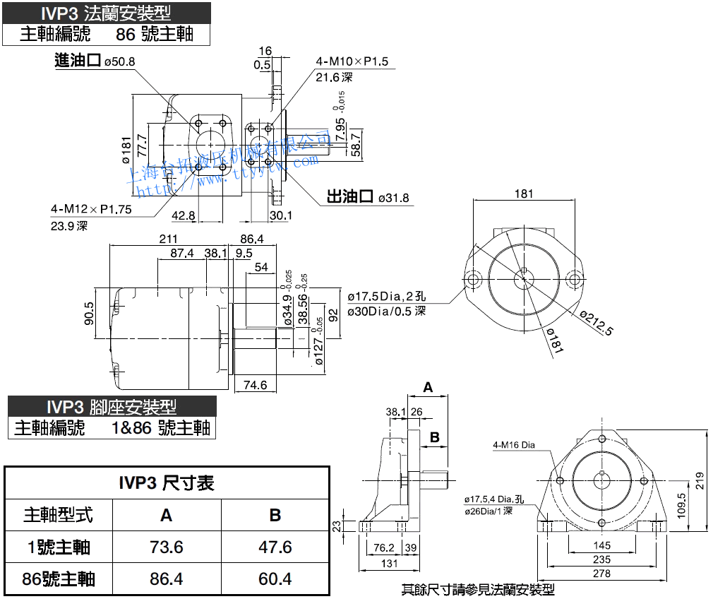 子母葉片定量泵IVP3(86號(hào)平鍵主軸/1&86號(hào)平鍵主軸)尺寸圖下載 子母葉片定量泵IVP3(11號(hào)花鍵主軸)尺寸圖下載