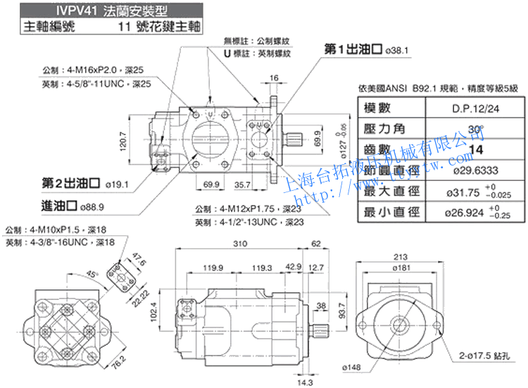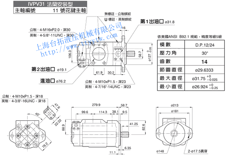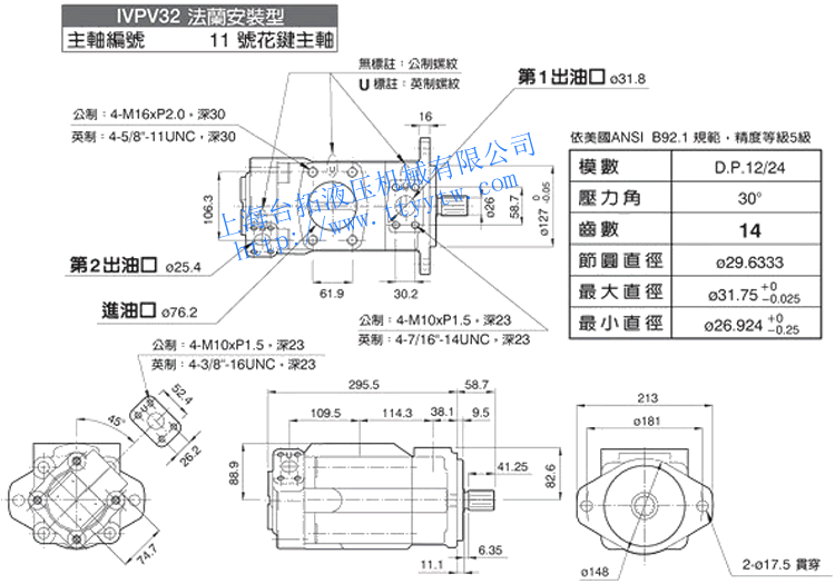 雙聯(lián)子母葉片定量泵IVPV21(11號花鍵主軸)尺寸圖下載 雙聯(lián)子母葉片定量泵IVPV31(1號平鍵主軸)尺寸圖下載