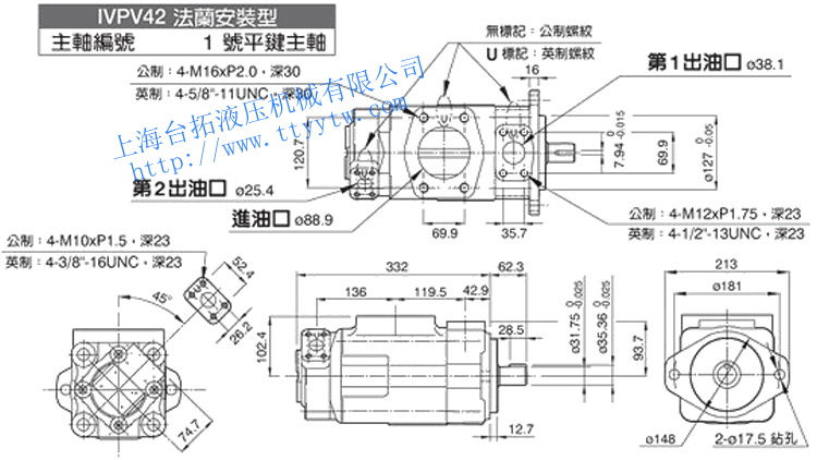 雙聯(lián)子母葉片定量泵IVPV42(1號平鍵主軸)尺寸圖下載 雙聯(lián)子母葉片定量泵IVPV42(86號平鍵主軸/1&86號主軸)尺寸圖下載