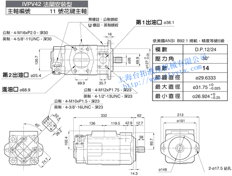 雙聯(lián)子母葉片定量泵IVPV42(11號花鍵主軸)尺寸圖下載 雙聯(lián)子母葉片定量泵IVPV43(1號平鍵主軸)尺寸圖下載