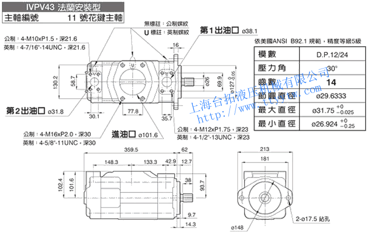 雙聯(lián)子母葉片定量泵IVPV31(86號平鍵主軸/1&86號主軸)尺寸圖下載 雙聯(lián)子母葉片定量泵IVPV31(11號花鍵主軸)尺寸圖下載