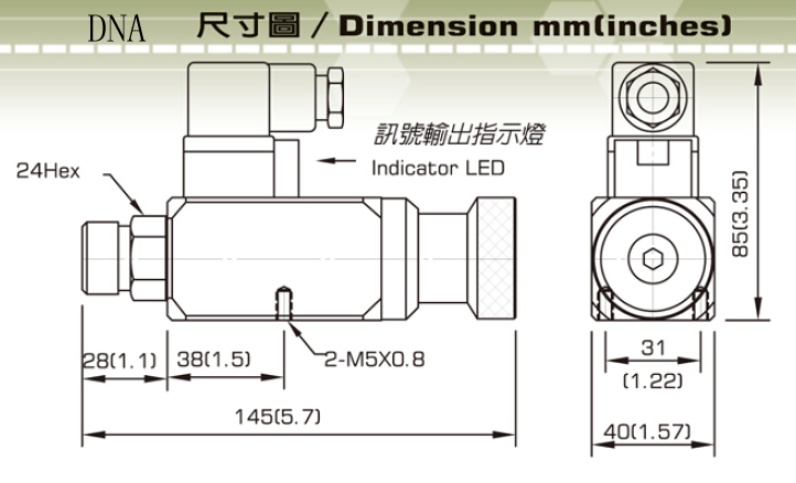 1、壓力繼電器DNA為機(jī)械式油電壓力開(kāi)關(guān),壓力直讀式,標(biāo)準(zhǔn)型,安裝為管式內(nèi)牙PT1/4",負(fù)載:5A-125,250VAC,LOAD:5A,30VDC,0.15A,125VDC。