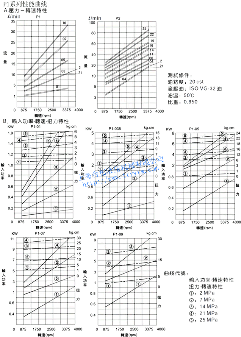 定量齒輪泵P1系列性能曲線