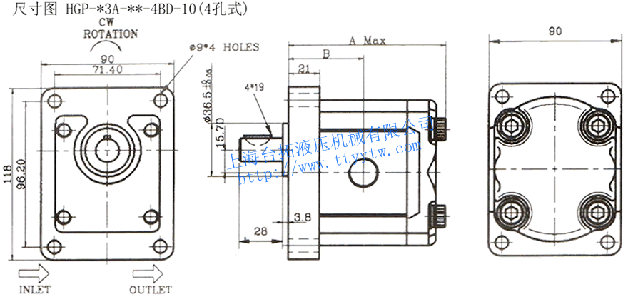4BD:DIN4孔式10 定量齒輪泵HGP-3A系列規(guī)格表