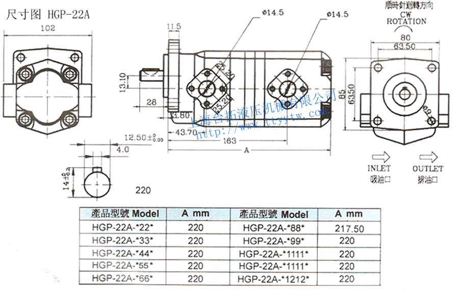 Z:推拔鍵4BJ:JIS 4孔式 10 高壓雙聯(lián)齒輪泵HGP-22A系列規(guī)格表