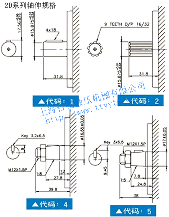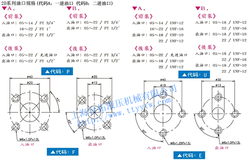 2 D G 1 B P 16 14 R 系列 型式/功能 前蓋法蘭規(guī)格 軸伸規(guī)格 2進油口數(shù) 出入油口規(guī)格 前泵排量 后泵排量 旋向(R,L) 備注:1、R表示右轉,面向軸伸順時針;L表示左轉,面向軸伸逆時針。2、假設您選前蓋法蘭為G,軸伸代碼為1,二進油口代碼為B,出入油口規(guī)格代碼為P,選用排量是16&14ml/r,旋向是右旋,正確的訂購型號:2DG1BP1614R。