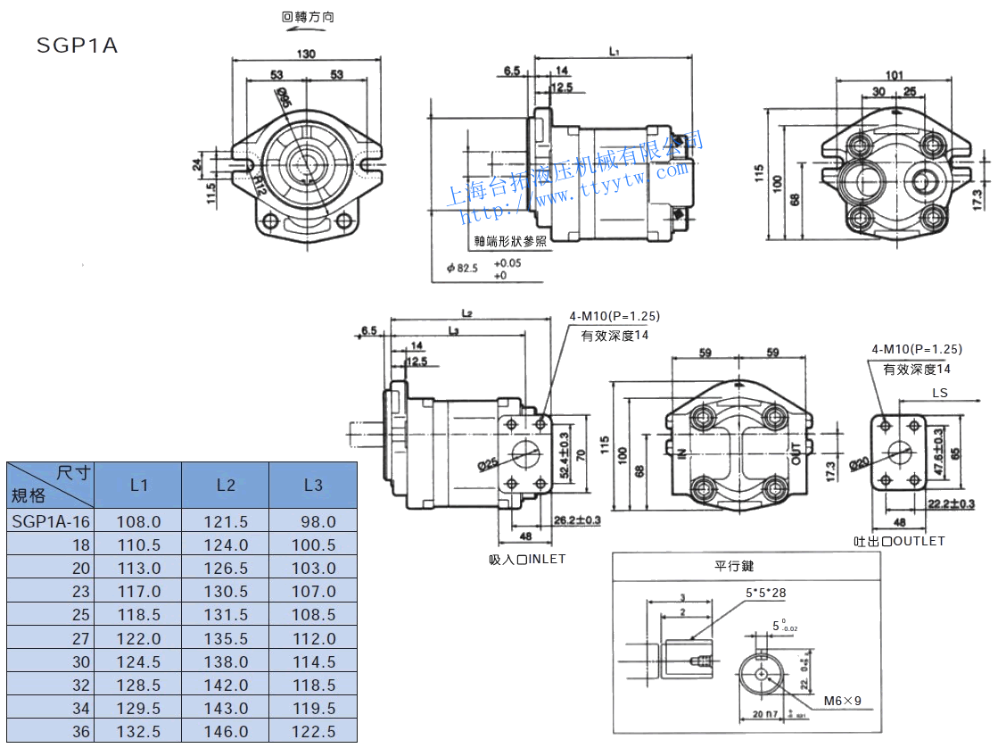 (順時(shí)針)3,4 外嚙合齒輪泵SGP1規(guī)格表