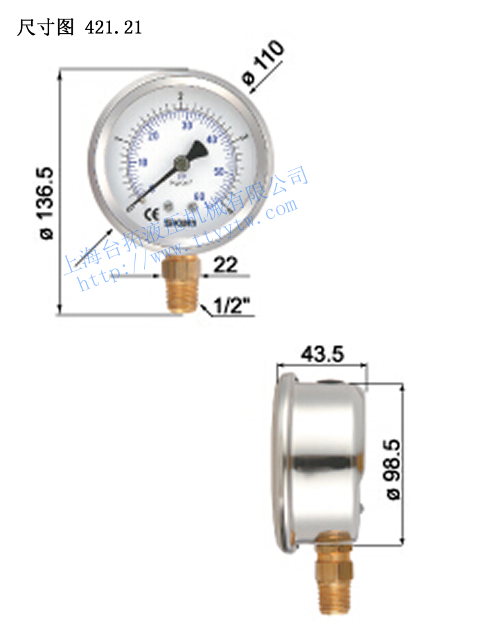 產(chǎn)品型號(hào):協(xié)鋼充油式壓力表421.21