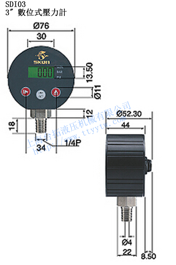 臺(tái)灣協(xié)鋼SKON數(shù)位壓力表SDI03尺寸圖