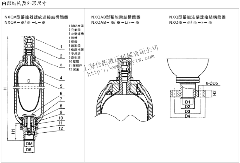 蓄能器NXQ系列內(nèi)部結(jié)構(gòu)及外形尺寸下載