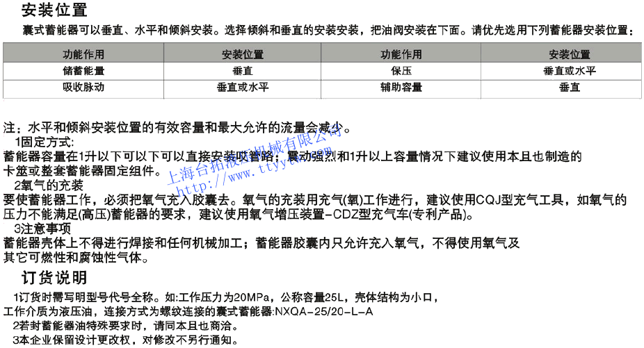 蓄能器NXQ系列安裝位置
