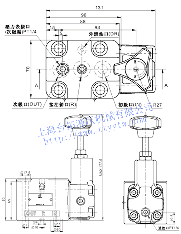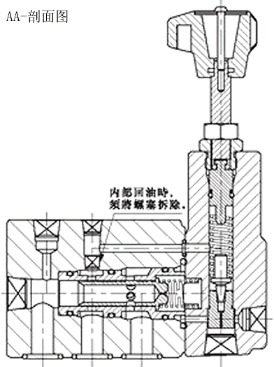 無標記:內(nèi)部泄油32 備注:外部泄油作為標準型,當回油口無背壓(5bar)以下)時,也能使用內(nèi)部泄油方式。2、需要更換泄油方式時,請參考型號說明進行。3、泄油口直接回油箱,為得到良好的減壓性能,初級口和主油路壓力差為5bar,泄漏量為600ml/min。