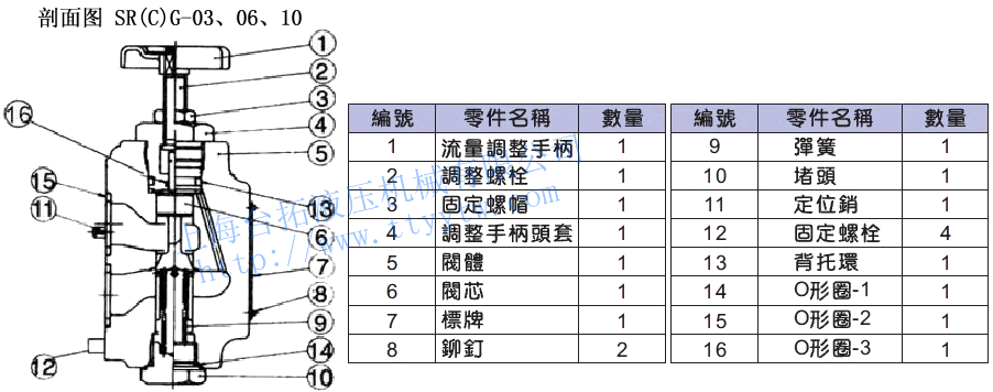 10:1-1/4"節(jié)流閥,單向節(jié)流閥SR系列規(guī)格表