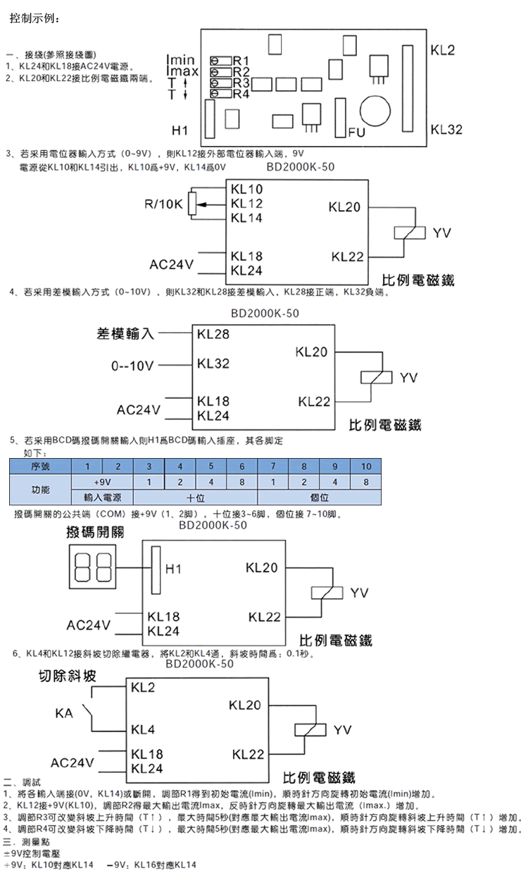 BD 2000K -50 系列號(hào)碼 負(fù)載 設(shè)計(jì)號(hào)碼 比例閥功率放大器 45Ω 50 比例閥功率放大器BD2000K-50控制示例