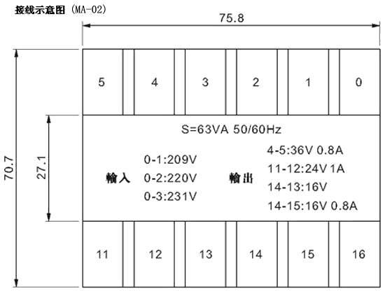 比例閥變壓器MA尺寸圖