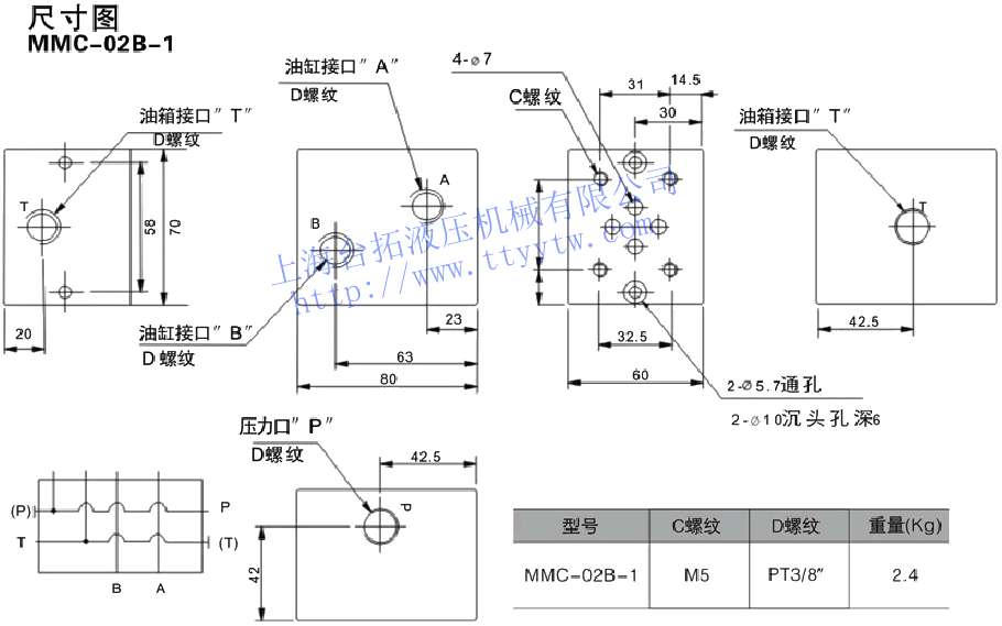 標準型油路塊MMC-02B-1尺寸圖下載 標準型油路塊MMC-02B-*尺寸圖下載