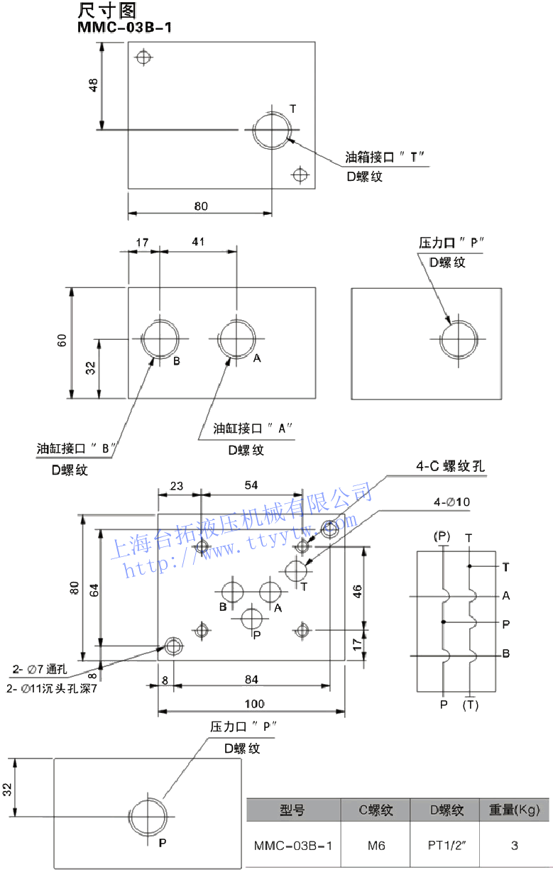 標準型油路塊MMC-03B-1尺寸圖下載 標準型油路塊MMC-03B-*尺寸圖下載