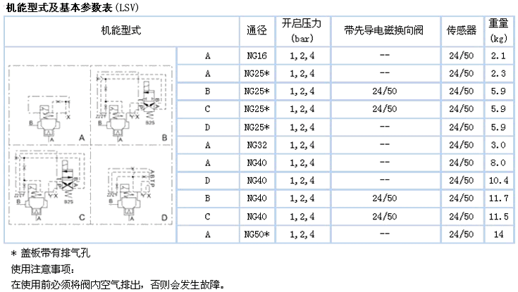 二通插裝式安全閥LSV機能型式及參數(shù)