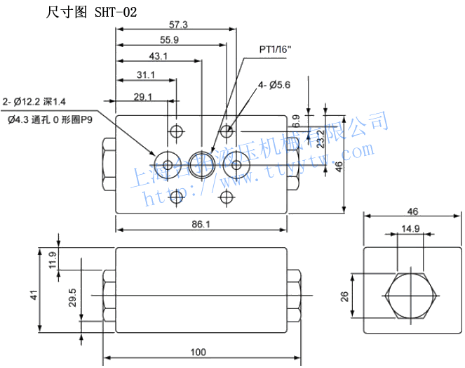 SHT -02 系列號碼 口徑尺寸 梭動閥 02:1/4" 梭動閥SHT-02尺寸圖