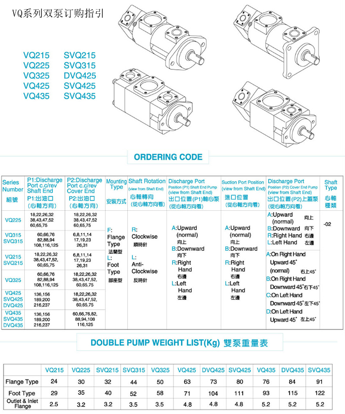 定量高壓雙泵SVQ215~SVQ435規(guī)格表