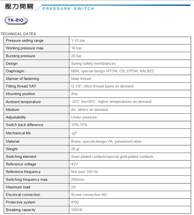 • 壓力開關(guān)TK-210 產(chǎn)品型號(hào):壓力開關(guān)TK-210