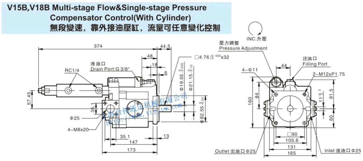 變量柱塞泵V15C,V18C尺寸圖下載 變量柱塞泵V15CG,V18CG尺寸圖下載