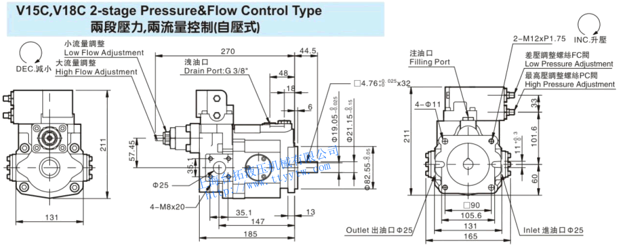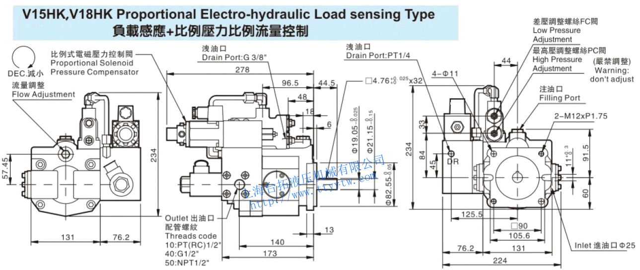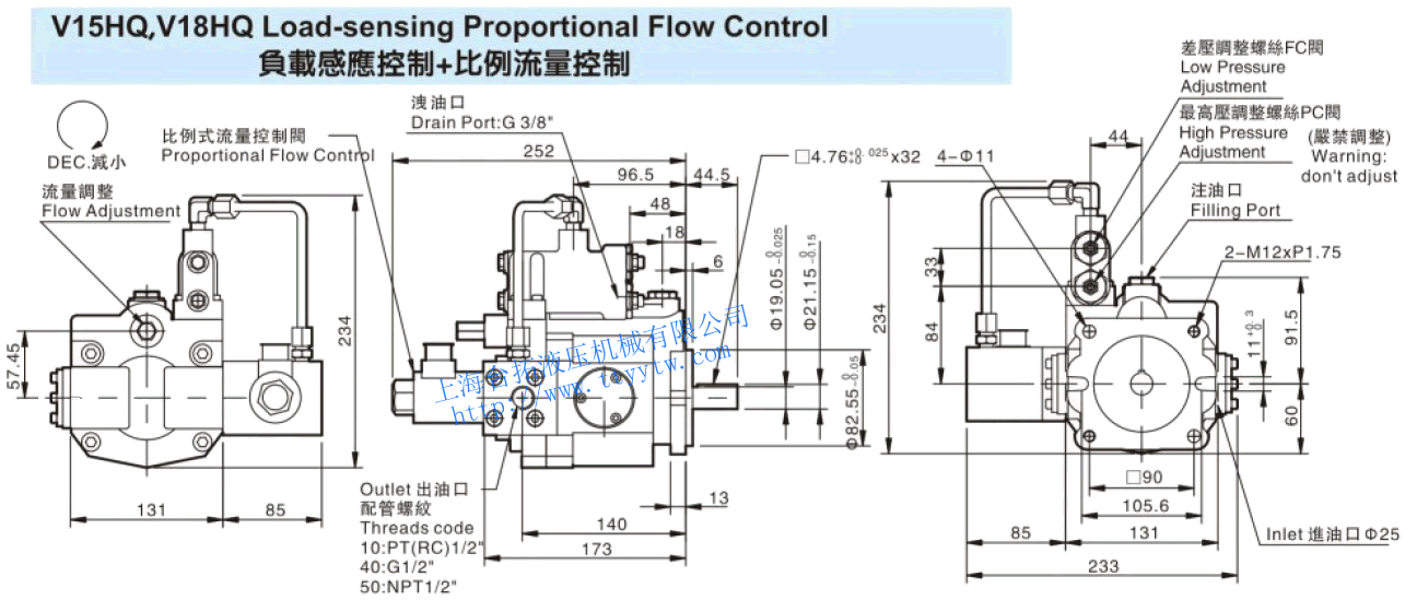 變量柱塞泵V15HK,V18HK尺寸圖下載 變量柱塞泵V15HQ,V18HQ尺寸圖下載