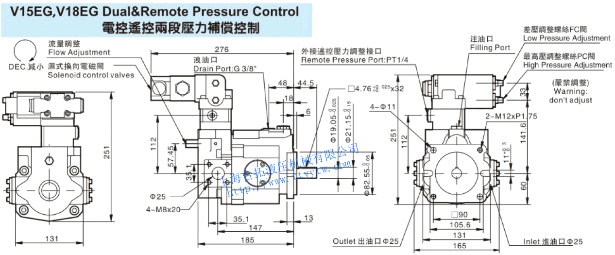變量柱塞泵V15E,V18E尺寸圖下載 變量柱塞泵V15EG,V18EG尺寸圖下載