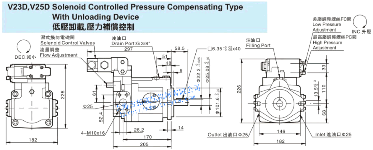 變量柱塞泵V23D,V25D尺寸圖下載 變量柱塞泵V23DG,V25DG尺寸圖下載