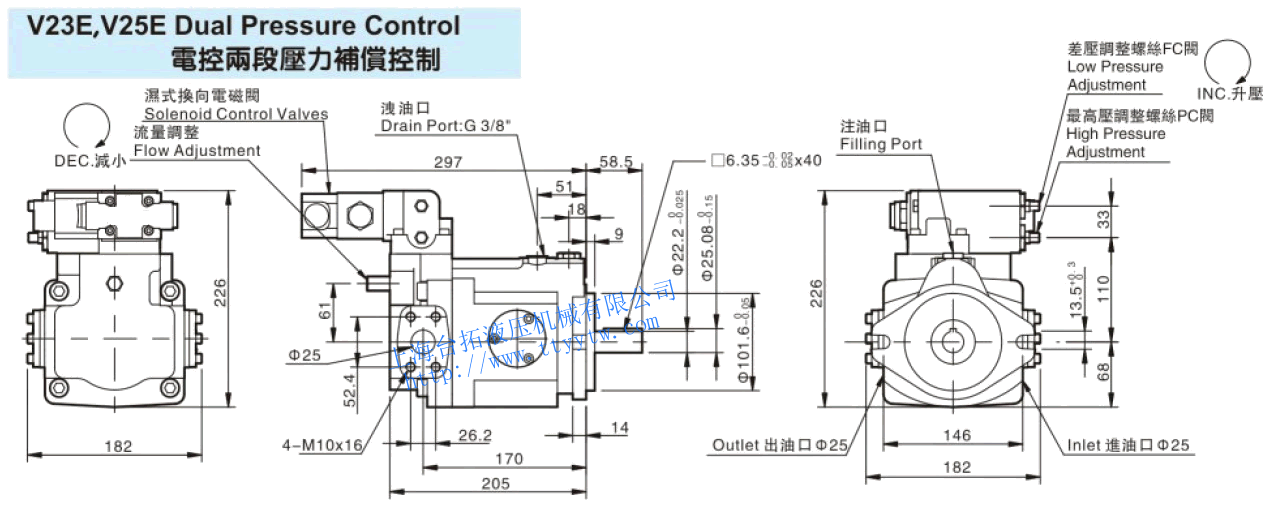 變量柱塞泵V23E,V25E尺寸圖下載 變量柱塞泵V23EG,V25EG尺寸圖下載