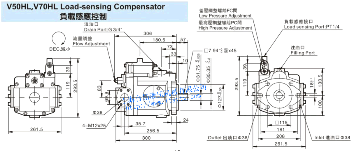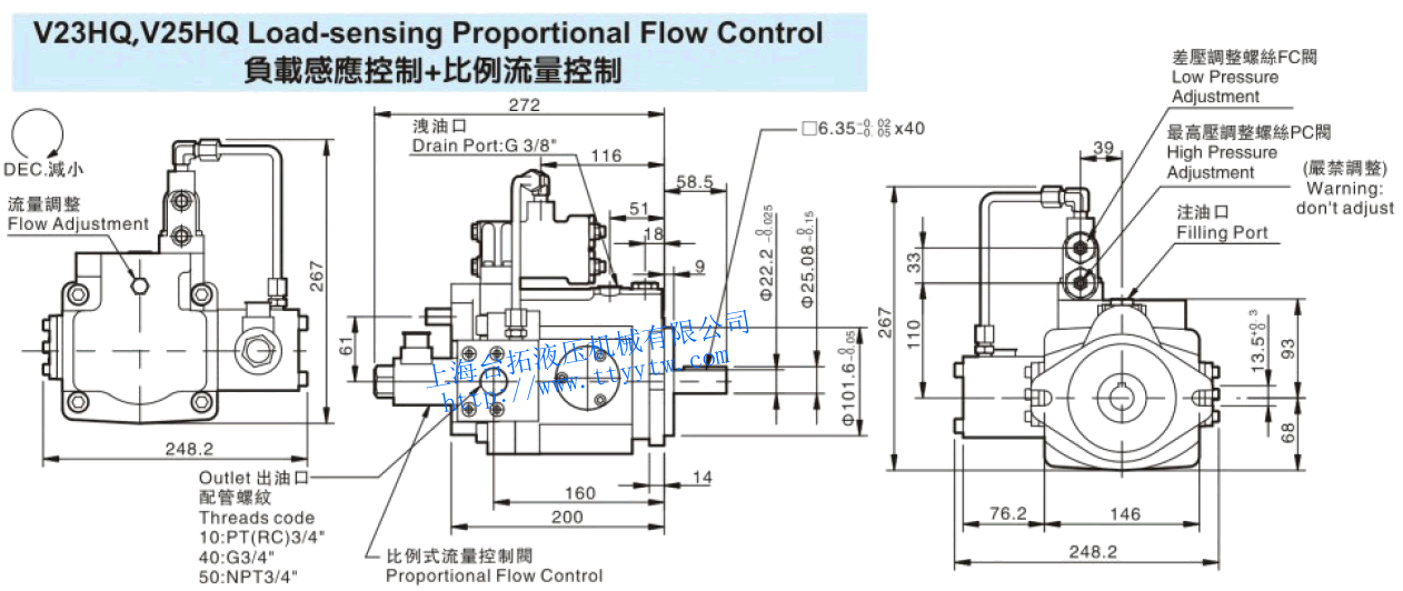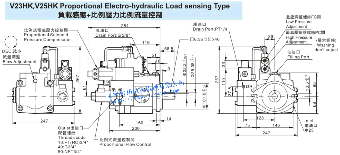 變量柱塞泵V23HK,V25HK尺寸圖下載 變量柱塞泵V23HQ,V25HQ尺寸圖下載