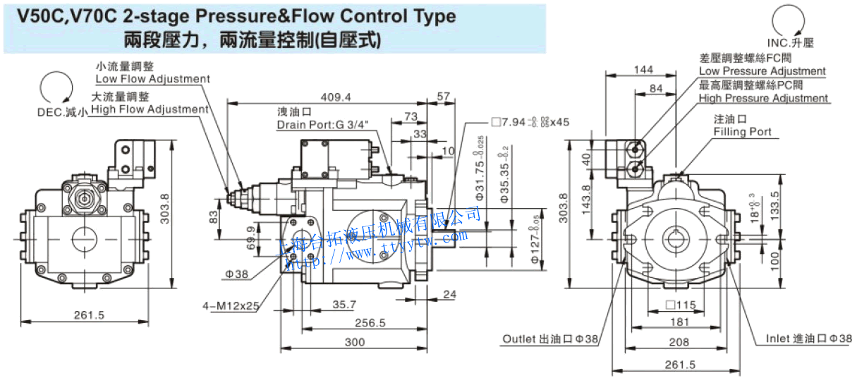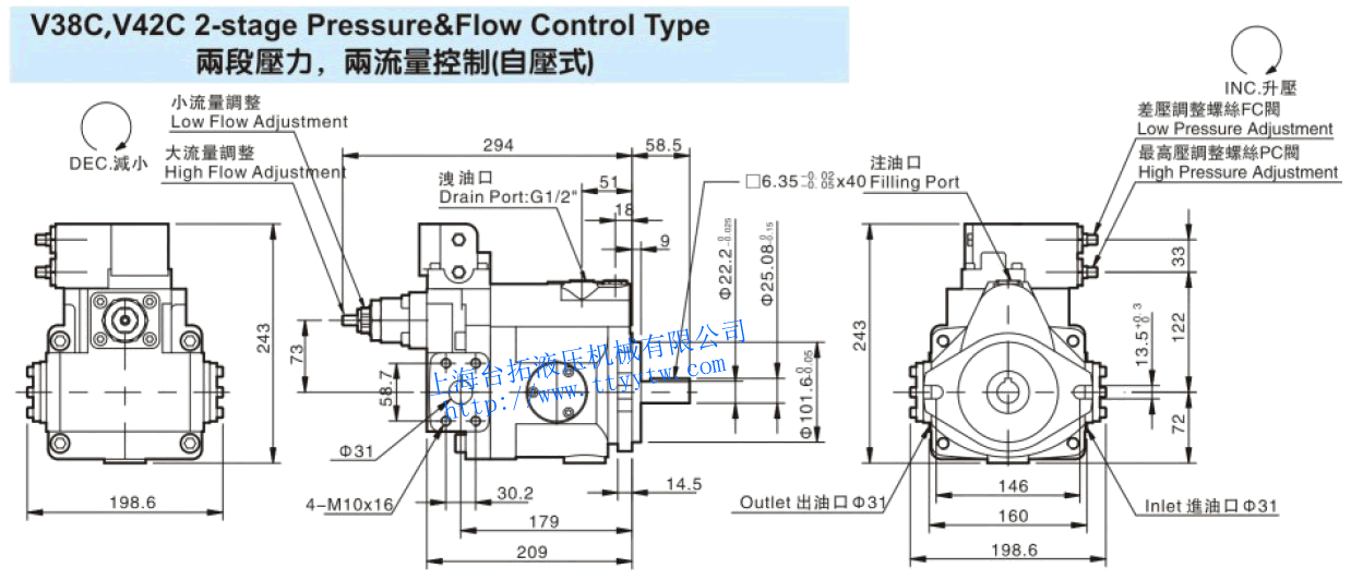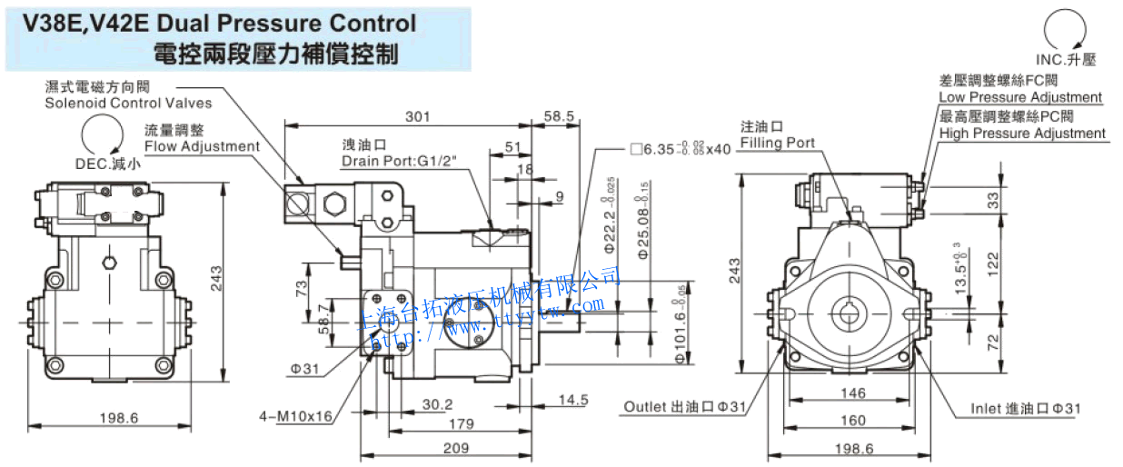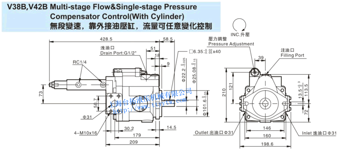 變量柱塞泵V38F,V42F尺寸圖下載 變量柱塞泵V38FG,V42FG尺寸圖下載