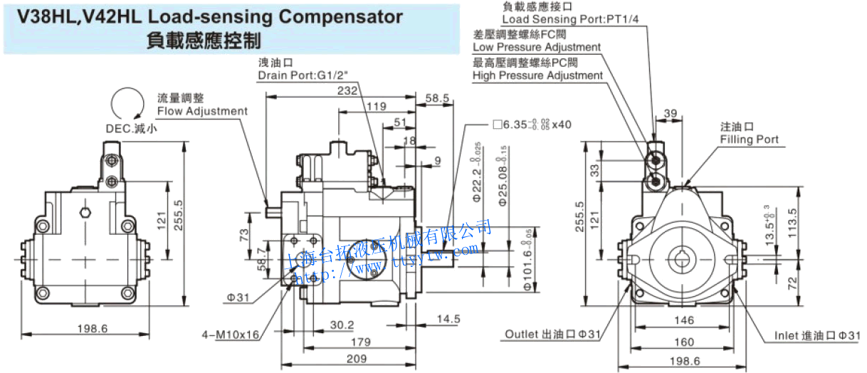 變量柱塞泵V38HK,V42HK尺寸圖下載 變量柱塞泵V38HQ,V42HQ尺寸圖下載