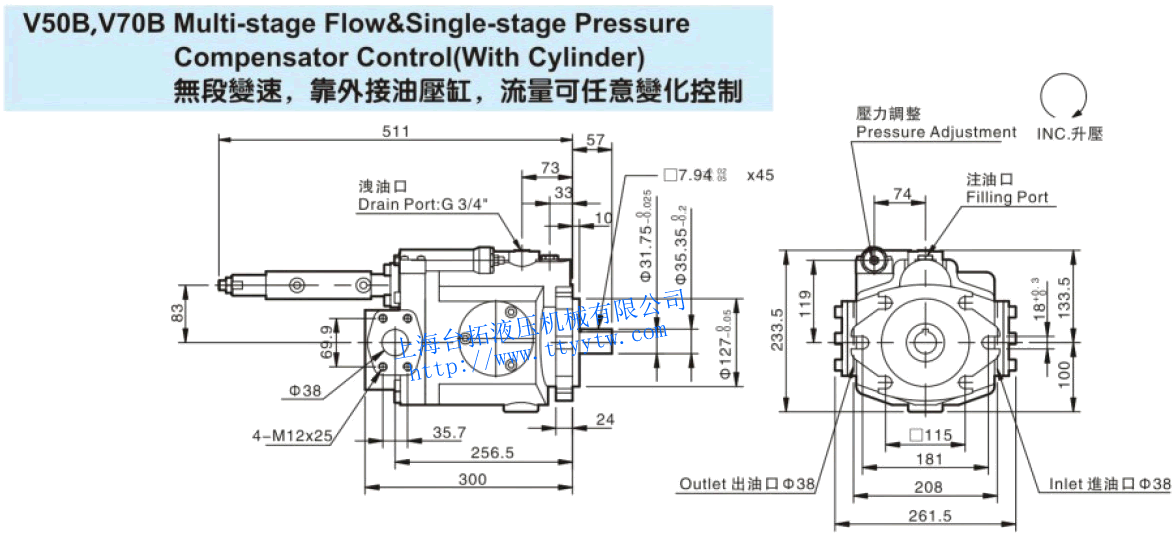 變量柱塞泵V50A,V70A尺寸圖下載 變量柱塞泵V50B,V70B尺寸圖下載