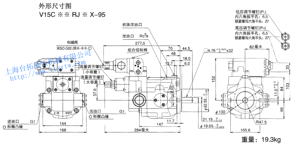 變量柱塞泵V15C*3RHX-95RC尺寸圖下載 變量柱塞泵V15C**RJ*X-95尺寸圖下載