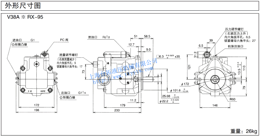 變量柱塞泵V38A4RX-95RC尺寸圖下載 變量柱塞泵V38A4R-95RC尺寸圖下載