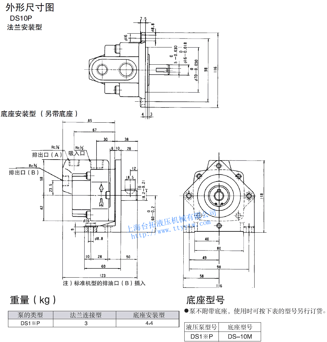 緊湊型單級葉片泵DS-P系列尺寸圖