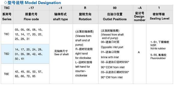 高壓葉片泵T6系列型號說明