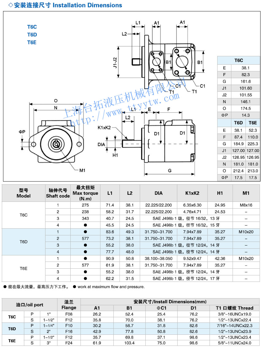 高壓葉片泵T6系列安裝連接尺寸