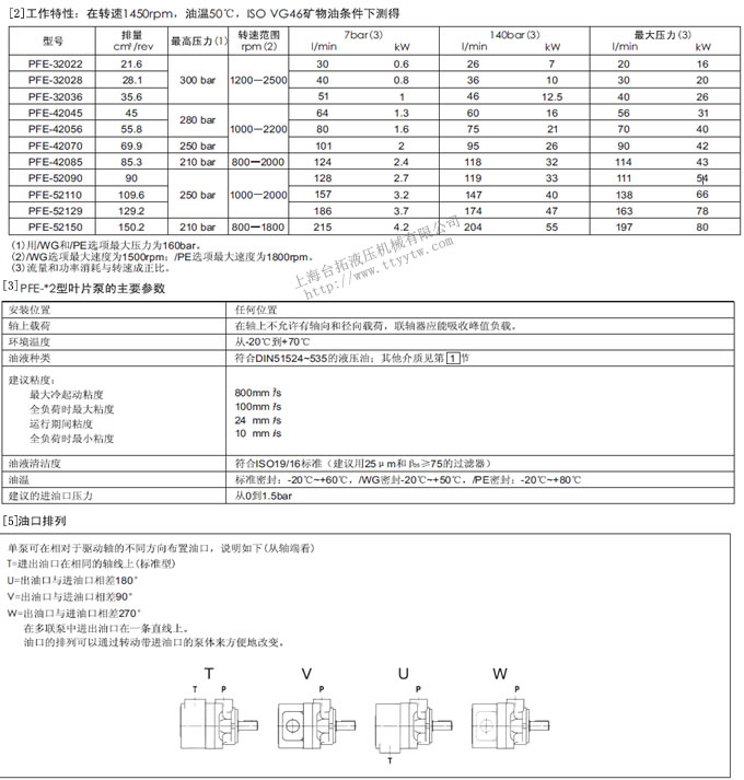 葉片泵PFE32/42/52工作特主要參數(shù)油口排列
