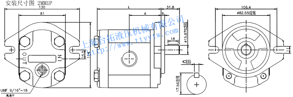 kg出入油口 額定工作 瞬間最高 @10Mpa-1000RPm A L 2MM1P05 5.0 25 30 600-4000 0.70 6.7 42.86 88.71 4.17 PT3/4" 2MM1P07 7.0 0.98 9.4 44.36 91.71 4.25 2MM1P08 8.4 1.18 11.3 45.61 94.21 4.31 2MM1P09 9.5 1.33 12.7 46.36 95.71 4.38 2MM1P11 11.3 1.59 15.2 47.86 98.71 4.55 2MM1P14 14.0 1.97 18.8 49.86 102.71 4.72 2MM1P16 16.0 2.25 21.5 51.36 105.71 4.81 2MM1P18 18.0 2.53 24.1 52.86 108.71 4.95 2MM1P20 19.5 600-2500 2.74 26.2 54.86 112.71 5.03 2MM1P22 21.5 3.02 28.8 55.36 113.71 5.12 2MM1P24 23.5 18 21 3.30 31.5 57.36 117.71 5.20 PT1" 2MM1P26 25.0 3.51 39.0 58.86 120.71 5.26 2MM1P28 28.0 3.93 37.6 60.86 124.71 5.32 2MM1P30 30.0 4.22 40.3 62.86 128.71 5.39 2MM1P33 33.0 4.63 44.3 64.86 132.71 5.45 雙向齒輪馬達2MM1P尺寸圖