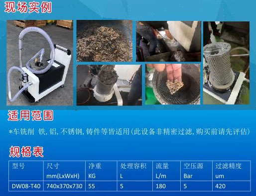 1、吸屑過濾機可以單獨使用,也可以搭配油水凈化循環(huán)機使用,只要是和油水有關(guān)的設備,都可以處理,讓水箱保持在最健康的狀態(tài)。