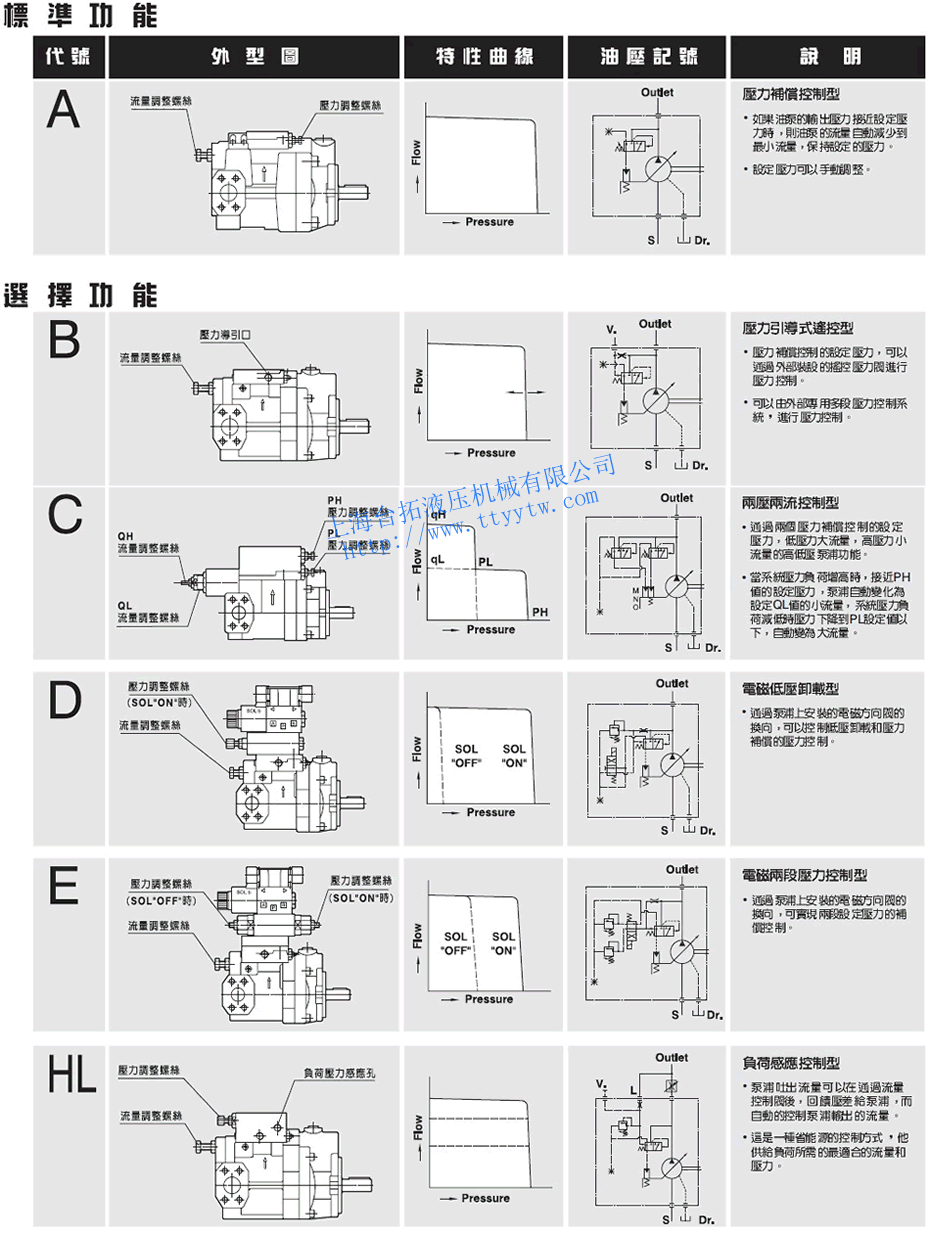P 16 -A 3 -S 型號說明 排量 控制功能方式 壓力調(diào)整范圍 安裝方式 變量柱塞泵