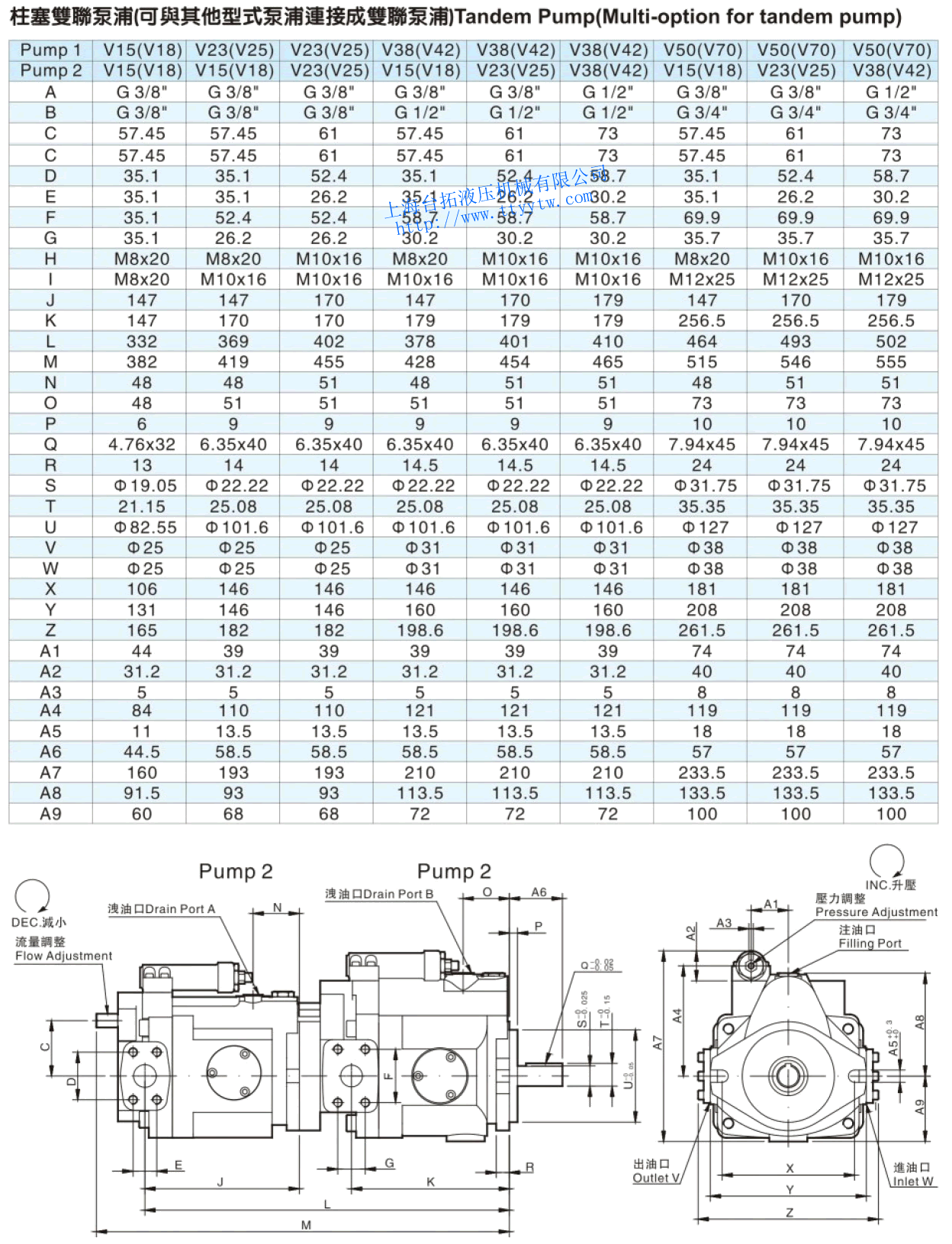 兩孔型1001 雙聯(lián)變量柱塞泵V系列規(guī)格表